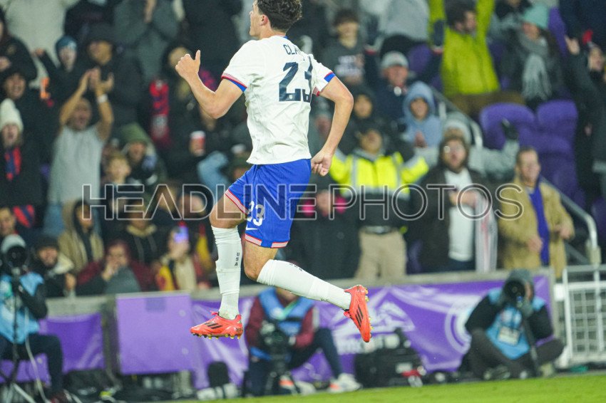 Orlando, Florida, January 22, 2025, USA player Emeka Eneli #23 celebrate after making a goal in a Friendly Match at Exploria Stadium. (Photo Credit: Marty Jean-Louis)