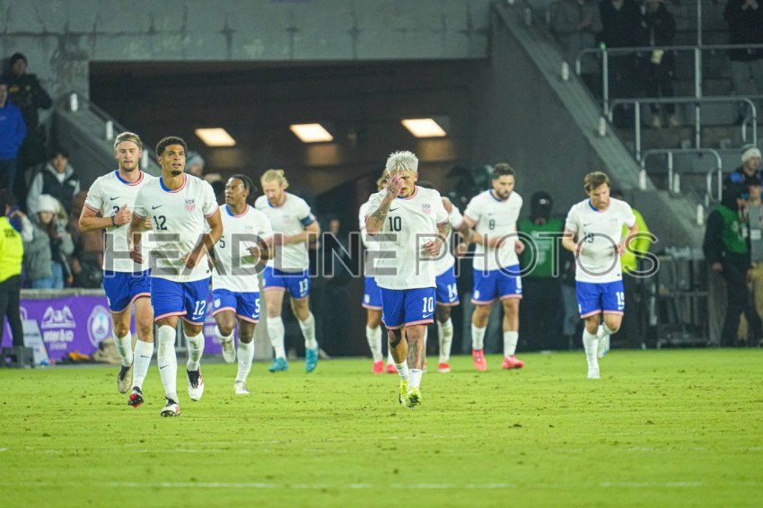 Orlando, Florida, January 22, 2025, USA players celebrate a goal in a Friendly Match at Exploria Stadium. (Photo Credit: Marty Jean-Louis)