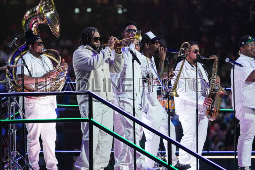 Musicians During the Super Bowl LIX (59) Opening Night Ceremony at the Caesars Superdome in New Orleans, Louisiana