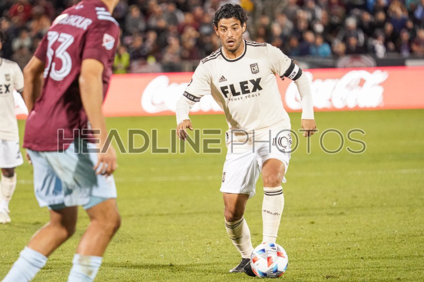 Denver, Colorado, USA, November 7, 2021, Los Angeles FC forward Carlos Vela #10 attempt to make a pass during the second half at Dick’s Sporting Goods Park (Photo Credit: Marty Jean-Louis)
