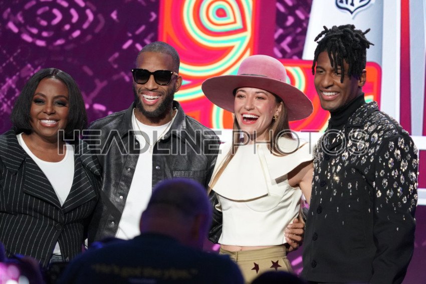 (left to right) Singer Ledisi, Musician Trombone Shorty, Singer Lauren Daigle and Jon Batiste During the Apple Music's Half time show Press Conference at the New Orleans Convention Center in New Orleans, Louisiana, USA