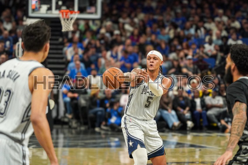 Orlando, Florida, USA, February 8, 2025, Orlando Magic forward Paolo Banchero #5 makes a pass at the Kia Center. (Photo Credit: Marty Jean-Louis)