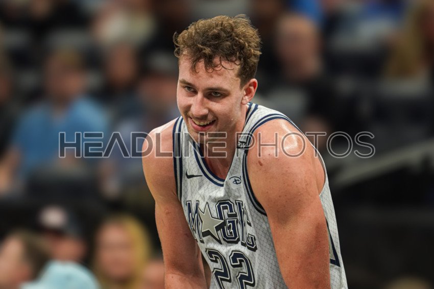 Orlando, Florida, USA, February 12, 2025, Orlando Magic forward Franz Wagner smiles during the first half at the Kia Center. (Photo Credit: Marty Jean-Louis)