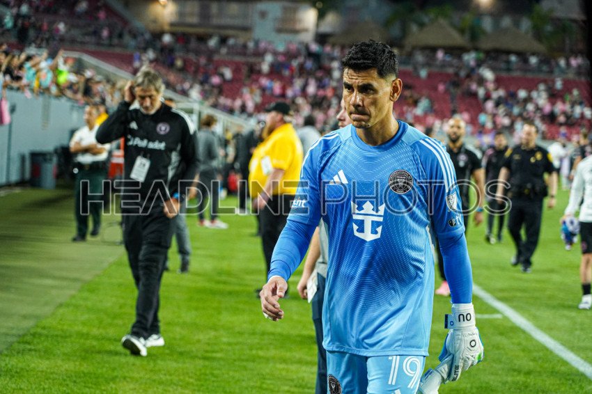Tampa, Florida, USA, February 14, 2025, Inter Miami goalkeeper Oscar Ustari #19 heading to the locker in a friendly Florida Derby Match at Raymond James Stadium. (Photo Credit: Marty Jean-Louis)