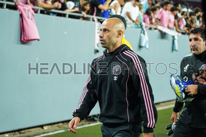 Tampa, Florida, USA, February 14, 2025, Inter Miami head coach Javier Mascherano heading to the locker in a friendly Florida Derby Match at Raymond James Stadium. (Photo Credit: Marty Jean-Louis)