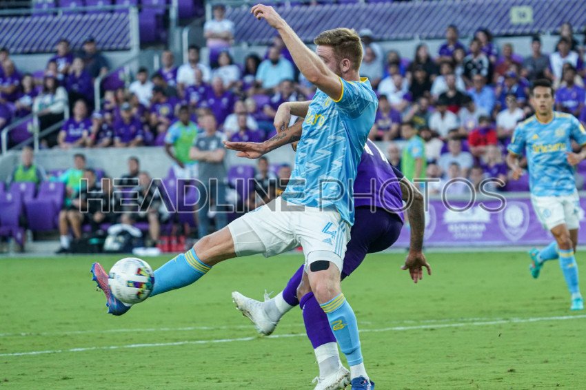 Orlando, Florida, USA, May 11, 2022, Philadelphia Union Defender Stuart Findlay #4 steals a pass during the first half at Exploria Stadium. (Photo Credit: Marty Jean-Louis)