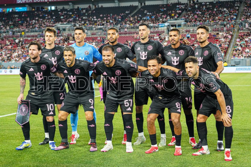 Tampa, Florida, USA, February 14, 2025, Inter Miami starting line up in a friendly Florida Derby Match at Raymond James Stadium. (Photo Credit: Marty Jean-Louis)