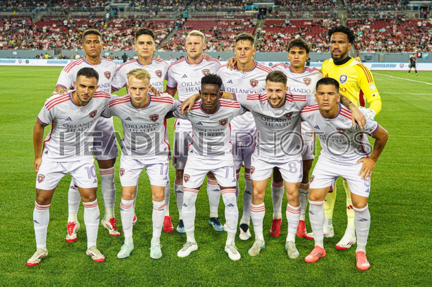 Tampa, Florida, USA, February 14, 2025, Orlando City SC starting line up in a friendly Florida Derby Match at Raymond James Stadium. (Photo Credit: Marty Jean-Louis)