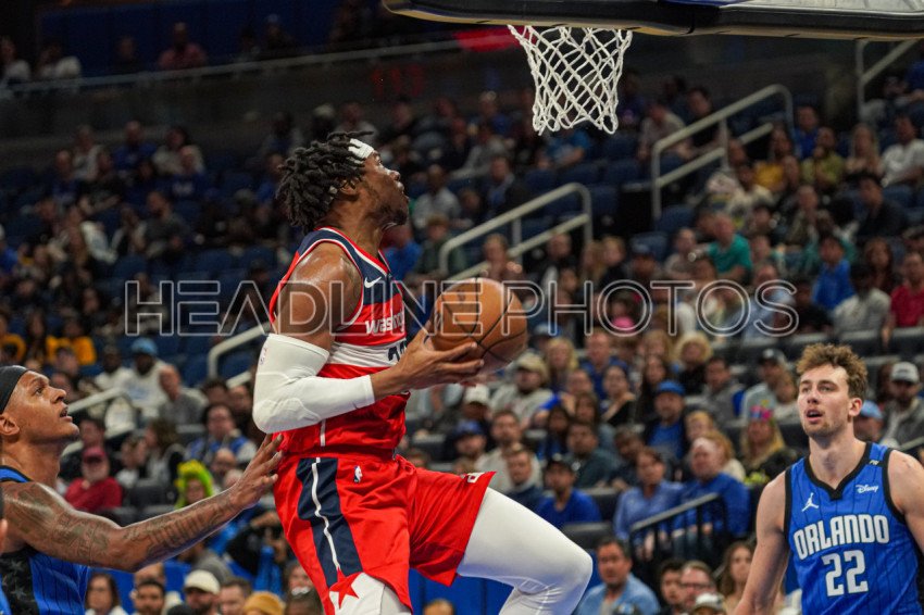 Orlando, Florida, USA, February 23, 2025, Washington Wizards center Richaun Homes #22 attempt to score at the Kia Center. (Photo Credit: Marty Jean-Louis)