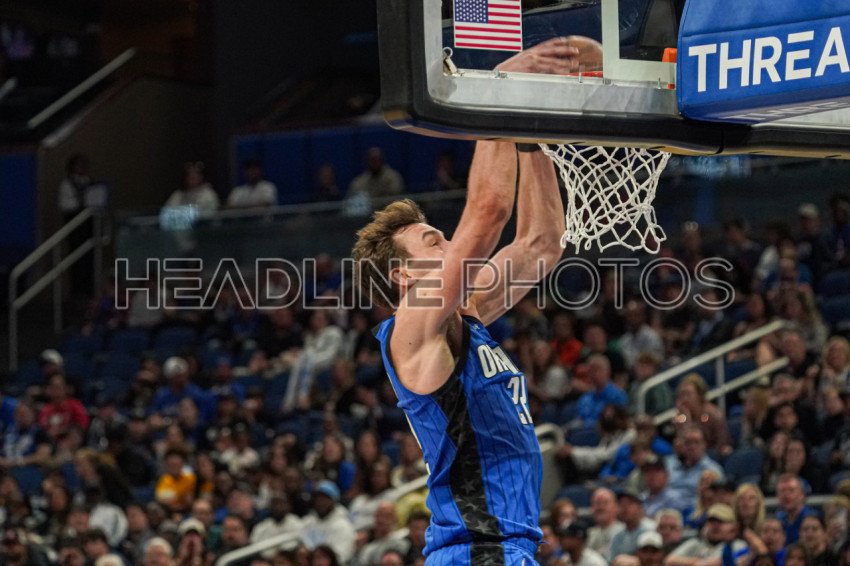 Orlando, Florida, USA, February 23, 2025, Orlando Magic forward Franz Wagner #22 makes a dunk at the Kia Center. (Photo Credit: Marty Jean-Louis)