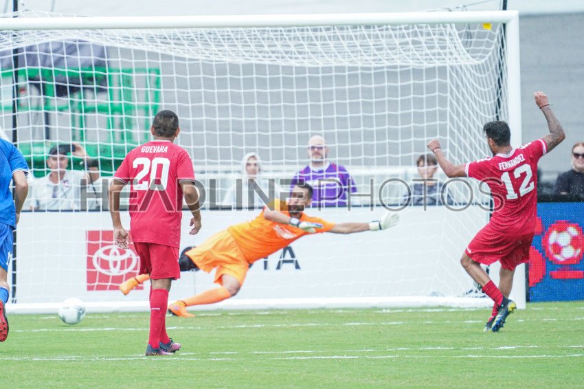 Daytona, Florida, USA, July 2, 2022, Team Americas player Augusto Fernandez #12 shoot a penalty during the Legends Game at the SoccerFest at Daytona Speedway. (Photo Credit: Marty Jean-Louis)