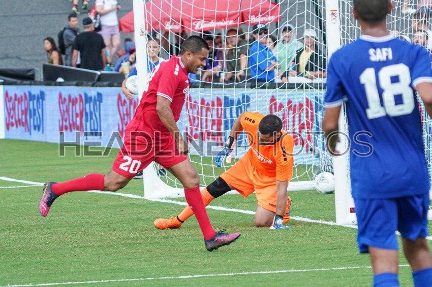 Daytona, Florida, USA, July 2, 2022, Team Americas player Amando :Guevara #20 makes a goal during the Legends Game at the SoccerFest at Daytona Speedway. (Photo Credit: Marty Jean-Louis)