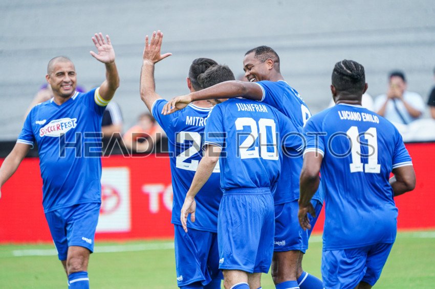 Daytona, Florida, USA, July 2, 2022, Team Europe players celebrate after goal during the Legends Game at the SoccerFest at Daytona Speedway. (Photo Credit: Marty Jean-Louis)