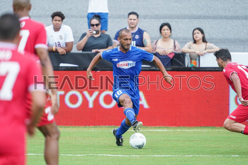 Daytona, Florida, USA, July 2, 2022, Team Europe player Rmak Safi #18 makes a run up field during the Legends Game at the SoccerFest at Daytona Speedway. (Photo Credit: Marty Jean-Louis)