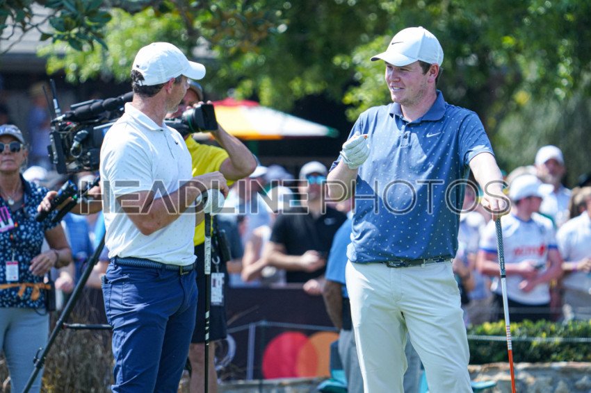 Orlando, Florida, USA, March 9, 2024, Rory McIlroy and Robert McIntyre having a laugh During the 2025 Arnold Palmer Invitational at Bay Hill Club. (Photo Credit: Marty Jean-Louis)