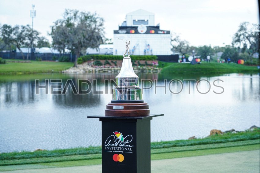 Orlando, Florida, USA, March 9, 2024, 2025 Arnold Palmer Invitational trophy at Bay Hill Club. (Photo Credit: Marty Jean-Louis)