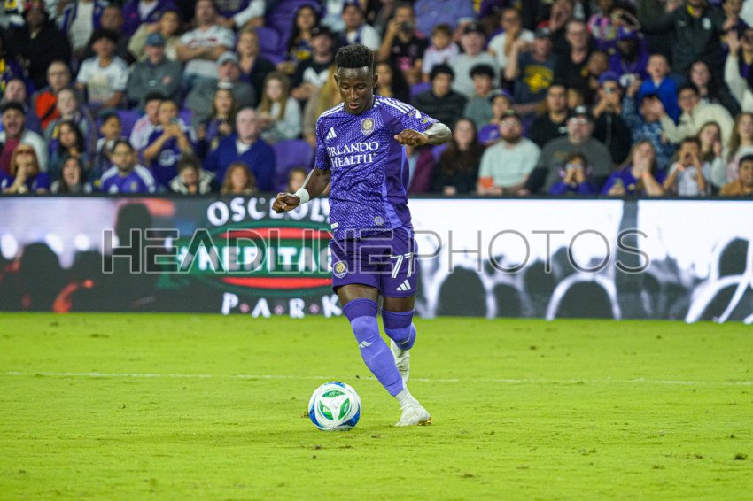 Orlando, Florida, USA, March 22, 2025, Orlando City SC forward Ivan Angulo #77 ruhses up field at Inter&Co Stadium. (Photo Credit: Marty Jean-Louis)