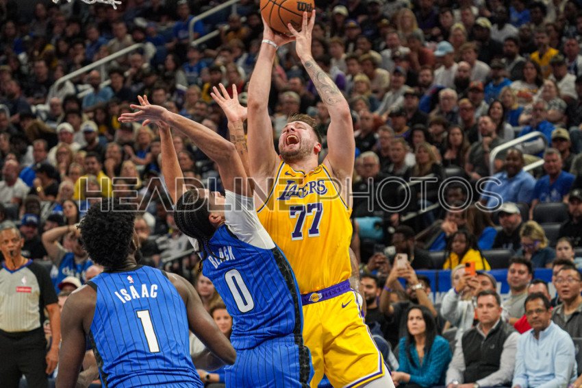 Orlando, Florida, USA, March 24, 2025, Los Angeles Lakers guard Luka Doncic #77 attempt to score during the first half at the Kia Center. (Photo Credit: Marty Jean-Louis)