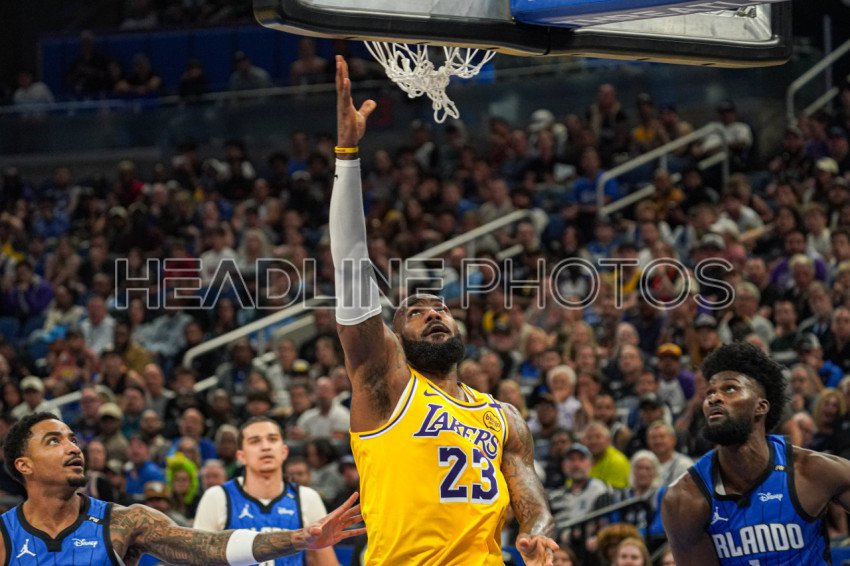 Orlando, Florida, USA, March 24, 2025, Los Angeles Lakers forward Lebron James during attempt to score during the first half at the Kia Center. (Photo Credit: Marty Jean-Louis)