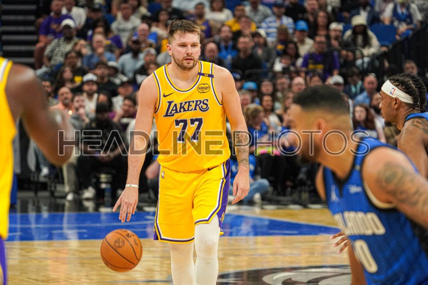 Orlando, Florida, USA, March 24, 2025, Los Angeles Lakers guard Luka Doncic #77 rushes forward at the Kia Center. (Photo Credit: Marty Jean-Louis)