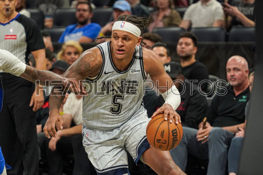 Orlando, Florida, USA, March 27, 2025, Orlando Magic forward Paolo Banchero #5 rushes forward at the Kia Center. (Photo Credit: Marty Jean-Louis)