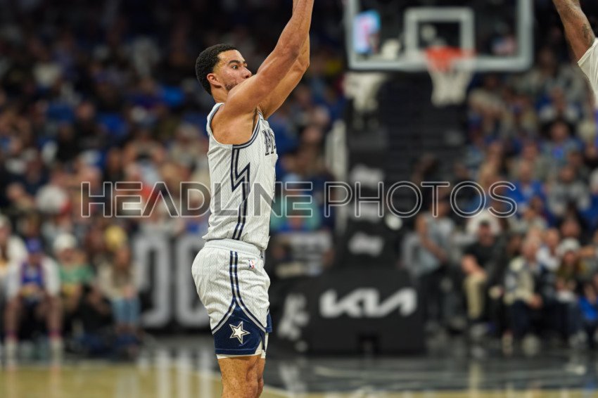 Orlando, Florida, USA, March 27, 2025, Orlando Magic forward Caleb Houstan #2 shoots a three at the Kia Center. (Photo Credit: Marty Jean-Louis)