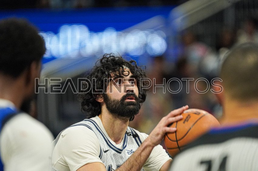 Orlando, Florida, USA, March 27, 2025, Orlando Magic center Goga Bitadze #35 shoos a free throw at the Kia Center. (Photo Credit: Marty Jean-Louis)