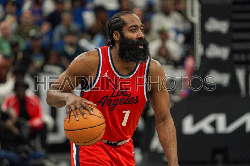 Orlando, Florida, USA, March 31, 2025, Los Angeles Clippers guard James Harden #1 moves forward at the Kia Center. (Photo Credit: Marty Jean-Louis)
