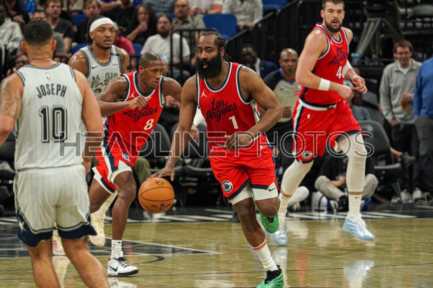 Orlando, Florida, USA, March 31, 2025, Los Angeles Clippers guard James Harden #1 moves forward at the Kia Center. (Photo Credit: Marty Jean-Louis)