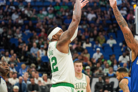 Orlando, Florida, USA, April 9, 2025, Boston Celtics forward Torrey Craig #12 shoots a three at the Kia Center. (Photo Credit: Marty Jean-Louis)