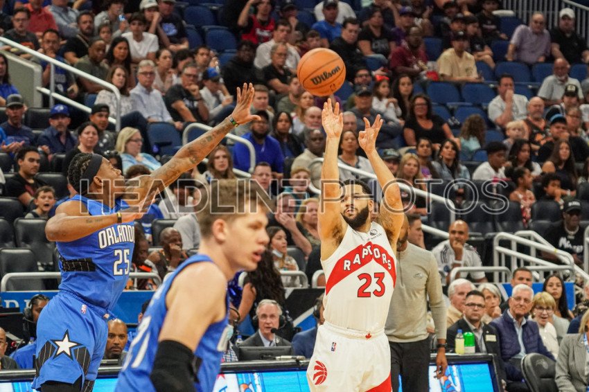 Orlando, Florida, USA, April 1, 2022, Toronto Raptors Shooting Guard Fred VanVleet #23 shoots a three point shot during the first half at the Amway Center. (Photo Credit: Marty Jean-Louis)