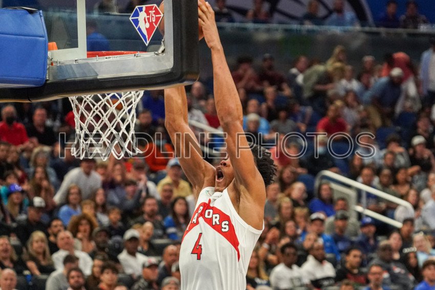 Orlando, Florida, USA, April 1, 2022, Toronto Raptors Small Forward Scottie Barnes #4 makes a dunk against the Orlando Magic at the Amway Center. (Photo Credit: Marty Jean-Louis)