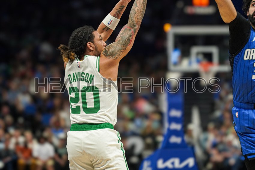 Orlando, Florida, USA, April 9, 2025, Boston Celtics guard JD Davison #20 shoots a three at the Kia Center. (Photo Credit: Marty Jean-Louis)