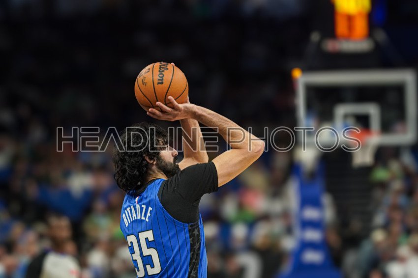 Orlando, Florida, USA, April 9, 2025, Orlando Magic center Goga Bitadze #35 shoots a three at the Kia Center. (Photo Credit: Marty Jean-Louis)