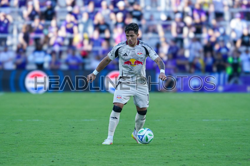 Orlando, Florida, USA, April 12, 2025, New York Red Bulls player Wikelman Carmona #19 runs up the field at Inter&Co Stadium. (Photo Credit: Marty Jean-Louis)