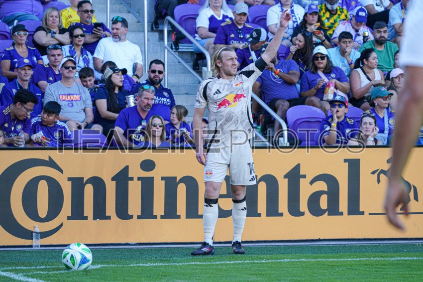 Orlando, Florida, USA, April 12, 2025, New York Red Bulls forward Emil Forsberg #10 readies to make a corner at Inter&Co Stadium. (Photo Credit: Marty Jean-Louis)