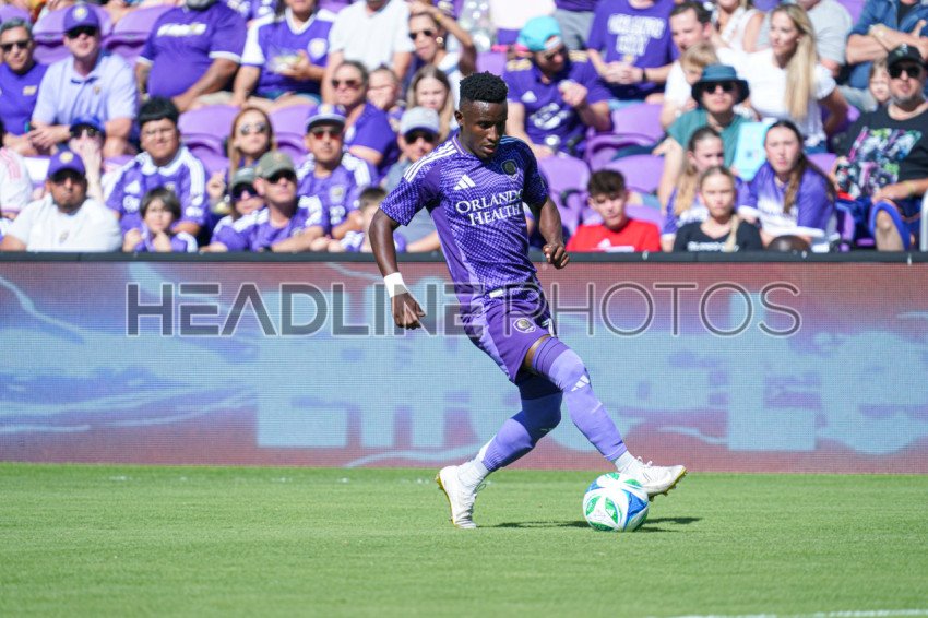 Orlando, Florida, USA, April 12, 2025, Orlando City SC player Iván Angulo #77 runs up field at Inter&Co Stadium. (Photo Credit: Marty Jean-Louis)