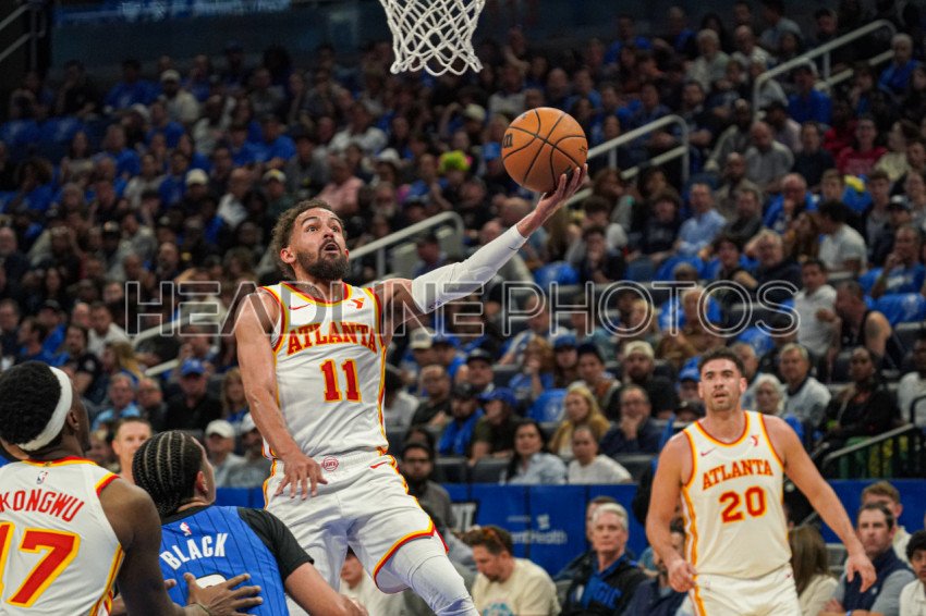 Orlando, Florida, USA, April 15, 2025, Atlanta Hawks guard Trae Young #11 is attempt to score at the Kia Center. (Photo Credit: Marty Jean-Louis)