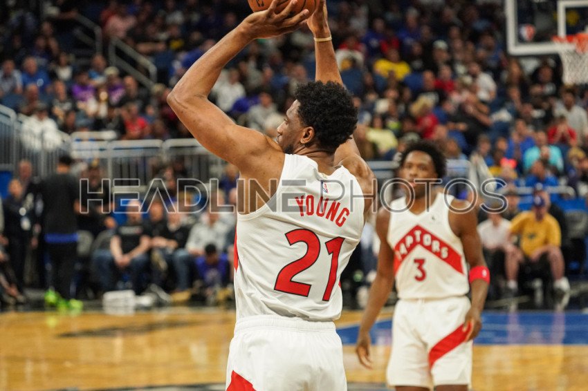 Orlando, Florida, USA, April 1, 2022, Toronto Raptors Power Forward Thaddeus Young #21 shoots a three point shot during the first half at the Amway Center. (Photo Credit: Marty Jean-Louis)