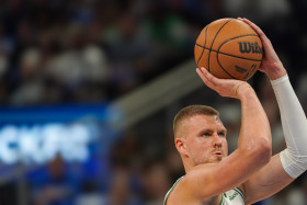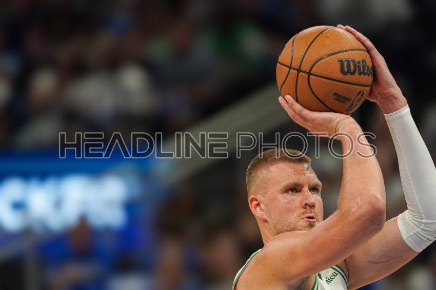 Orlando, Florida, USA, April 25, 2025, Boston Celtics center Kristaps Porzingis #8 shoots a free throw the Kia Center. (Photo Credit: Marty Jean-Louis)