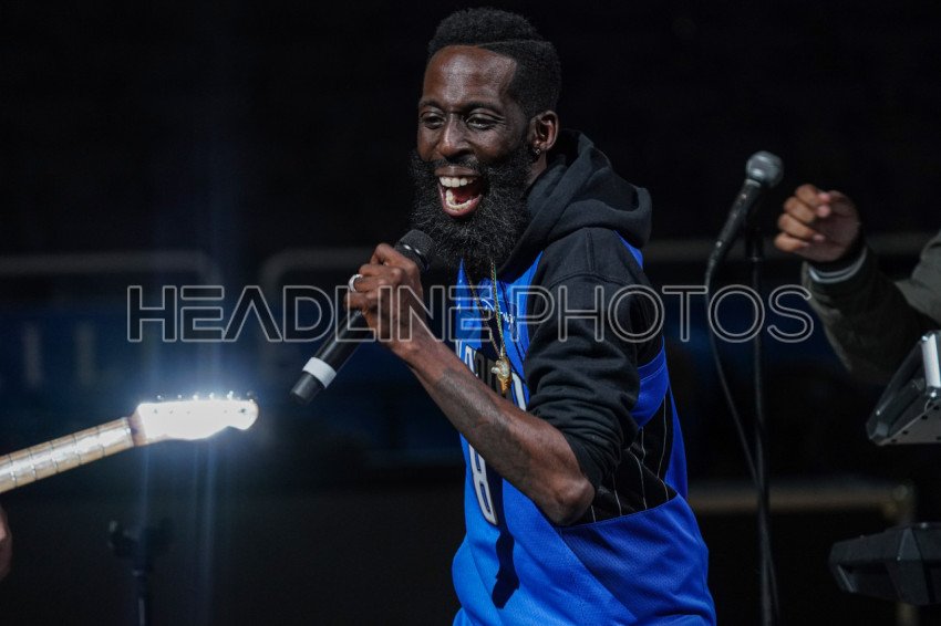 Orlando, Florida, USA, April 1, 2022, Tye Tribbett performing during Faith & Family night after the Toronto Raptors vs Orlando Magic at the Amway Center. (Photo Credit: Marty Jean-Louis)