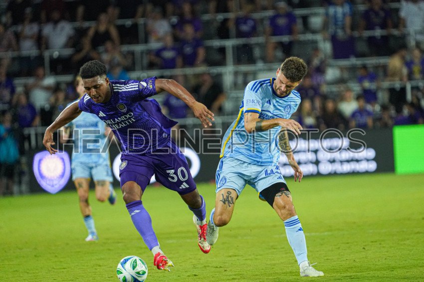 Orlando, Florida, USA, April 26, 2025, Orlando City SC player Alex Freeman fight to keep the ball at Inter&Co Stadium. (Photo Credit: Marty Jean-Louis)