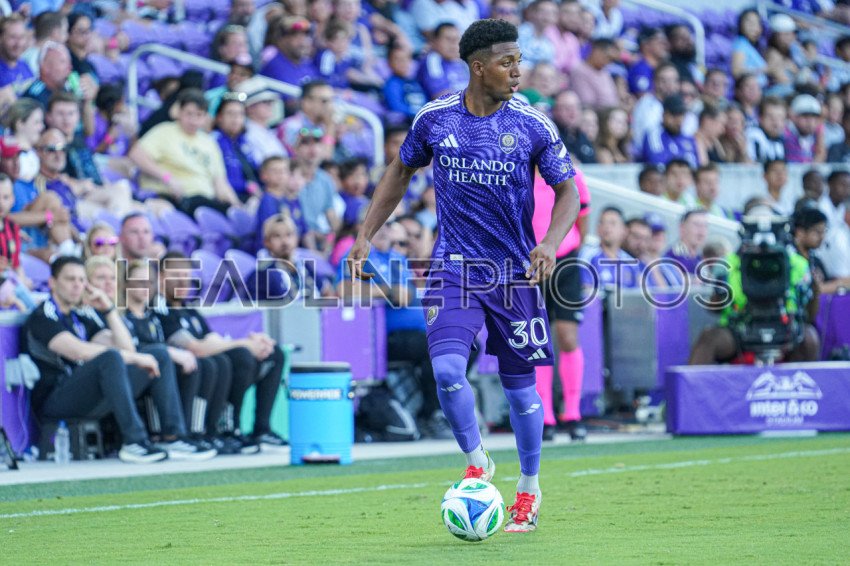 Orlando, Florida, USA, April 26, 2025, Orlando City SC player Alex Freeman #30 runs up field at Inter&Co Stadium. (Photo Credit: Marty Jean-Louis)