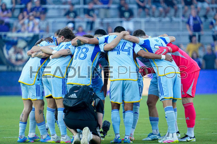 Orlando, Florida, USA, April 26, 2025, Atlanta United players huddle before the game begins at Inter&Co Stadium. (Photo Credit: Marty Jean-Louis)