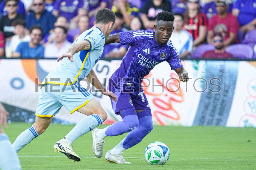 Orlando, Florida, USA, April 26, 2025, Orlando City SC midfielder Ivan Angulo #77 runs up field at Inter&Co Stadium. (Photo Credit: Marty Jean-Louis)