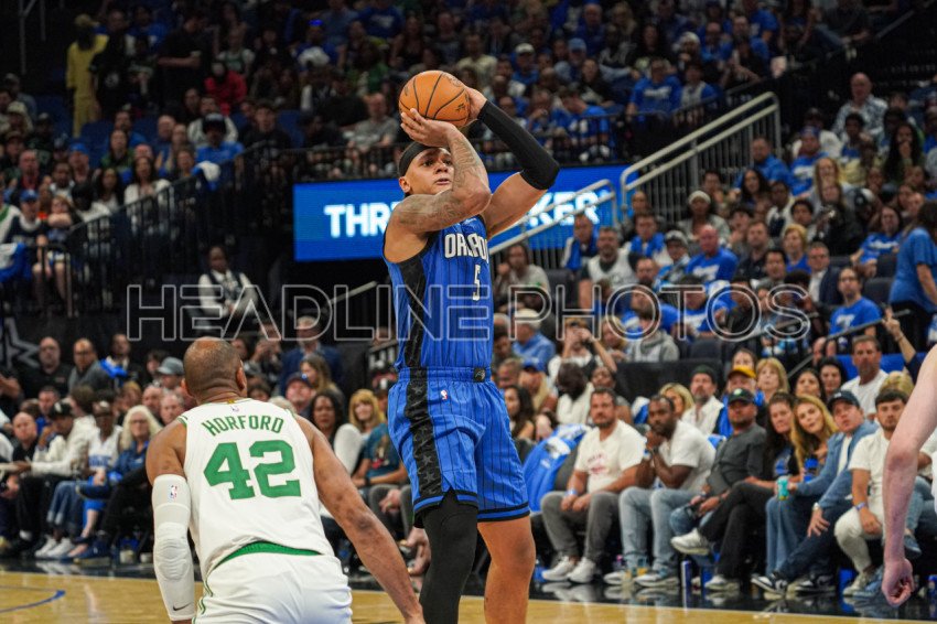 Orlando, Florida, USA, April 27, 2025, Orlando Magic forward Paolo Banchero #5 attempt to score at the Kia Center. (Photo Credit: Marty Jean-Louis)