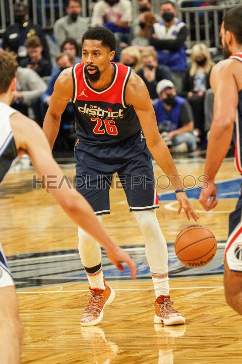 Orlando, Florida, USA, November 13, 2021, Washington Wizards Guard Spencer Dinwiddie #26 dribbles the ball at the Amway Center. (Photo Credit: Marty Jean-Louis)