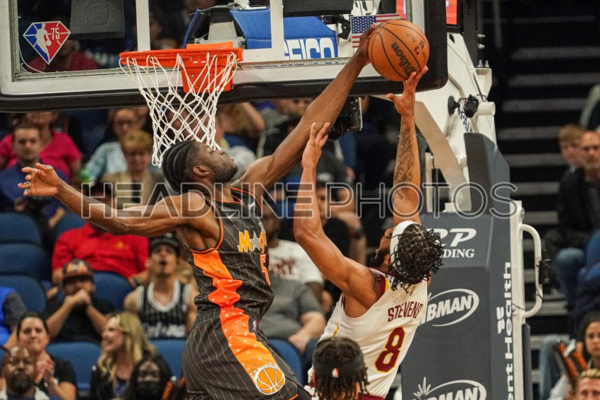 Orlando, Florida, USA, April 5, 2022, Orlando Magic Center Mo Bamba Blocks a shot in the fourth quarter at the Amway Center. (Photo Credit: Marty Jean-Louis)
