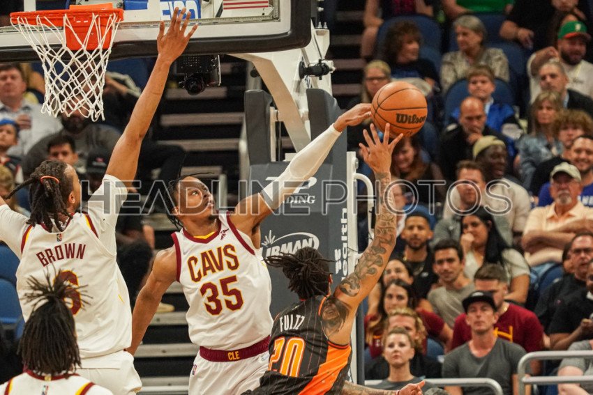 Orlando, Florida, USA, April 5, 2022, Orlando Magic Point Guard Markelle Fultz #20 attempt to make a basket but is blocked Isaac Okoro #35 in the first half by at the Amway Center. (Photo Credit: Marty Jean-Louis)