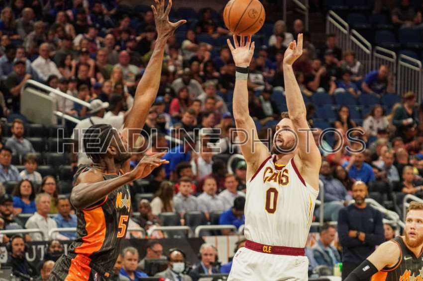 Orlando, Florida, USA, April 5, 2022, Cleveland Cavaliers Power Forward Kevin Love #0 shoots a three point shot in the first half at the Amway Center. (Photo Credit: Marty Jean-Louis)
